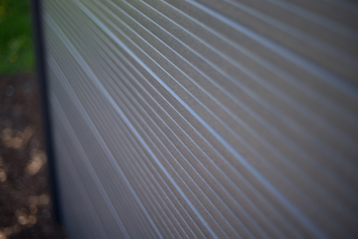 DER FLEXIBLE besteht aus edlen Aluminiumpfosten in den Farben Braun oder Anthrazit und beidseitig geriffelten Lamellen, die ganz einfach übereinander gesteckt werden und in der Höhe variabel angepasst werden können. Das Pfostenset ist zum Aufdübeln oder als Erdanker erhältlich. DER FLEXIBLE kann auf Wunsch mit Fenstermodulen aus Acrylglas oder aus Edelstahl ausgestattet werden. Erhältlich ist der neue Sichtschutz / Schallschutz in den Farben Braun, Anthrazit und in modernem Titangrau.